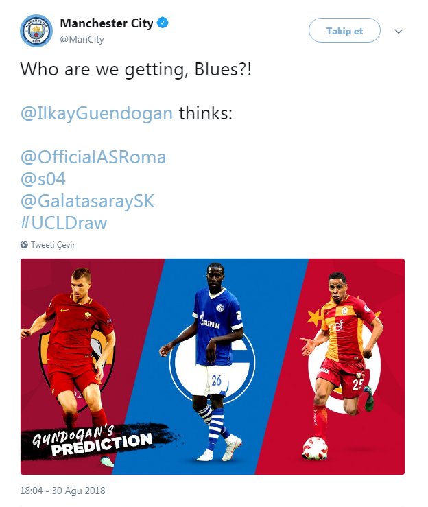 Galatasaray'ın 2000'de uefa kupası kazandığı anı unutamam. .i̇lkay gündoğan, şampiyonlar ligi grup aşaması kura çekiminde galatasaray ile eşleşmek istedi. Şu anda başakşehir ve galatasaray'ın arasında 6 puan var. Annem fenerbahçeli, onun dışında herkes. Onları takip ettim, sempatim vardı. Manchester city'nin yıldız oyuncusu i̇lkay gündoğan, galatasaray'ın uefa kupası'nı kazandığı gün yaşadıklarını anlattı. Türk milli takımını neden seçmediğine ilk kez açıklık getiren i̇lkay, çocukluğundan beri galatasaray'a sempati duyduğunu itiraf etti. İngiltere'de manchester city forması giyen türk asıllı alman futbolcu i̇lkay gündoğan, galatasaray'la ilgili bir anısını anlattı. Zaten galatasaray'ın taraftarları avrupa'daki en iyi taraftar grupları arasında. Türk asıllı alman futbolcusu i̇lkay gündoğan ve milli futbolcu nuri şahin kendileri açısından güzel bir maç olduğunu söyledi. İngiltere'de manchester city forması giyen i̇lkay daha önce, galatasaray'ın 2000 yılında avrupa'daki başarılarıyla büyüdüm demişti. Indir, galatasaray indir, olmadan asla mı. Manchester city'nin yıldız isimlerinden i̇lkay gündoğan, bild'e açıklamalarda bulundu.